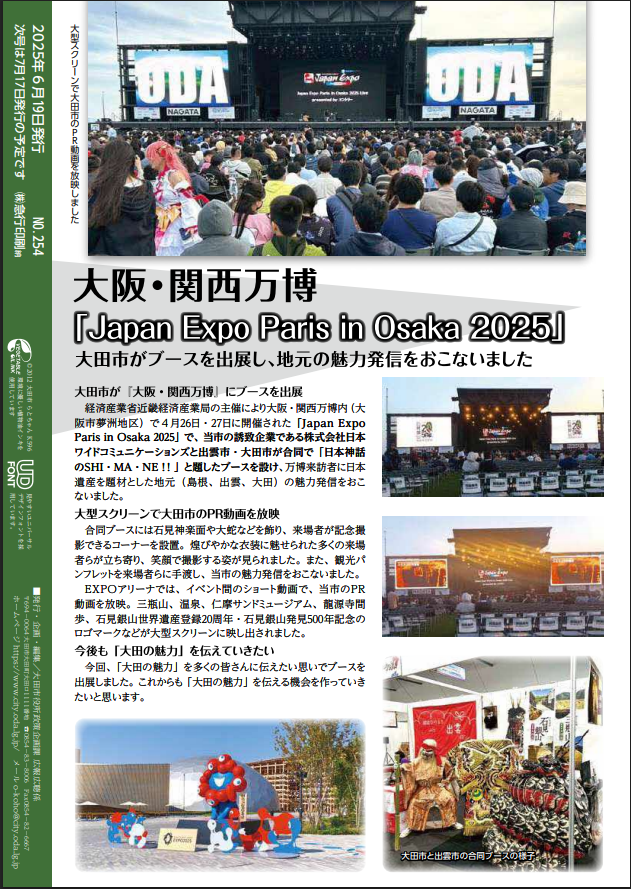 2025年4月26日、27日に大阪・関西万博で開催された「Japan Expo Paris in Osaka 2025」について、島根県大田市の広報に掲載されました。