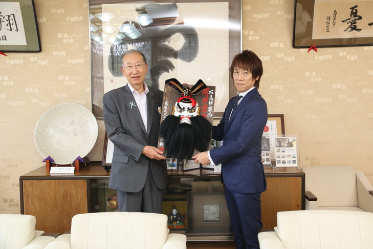 下記の通り、2023年8月には市長より感謝状と神楽面が贈呈されました。